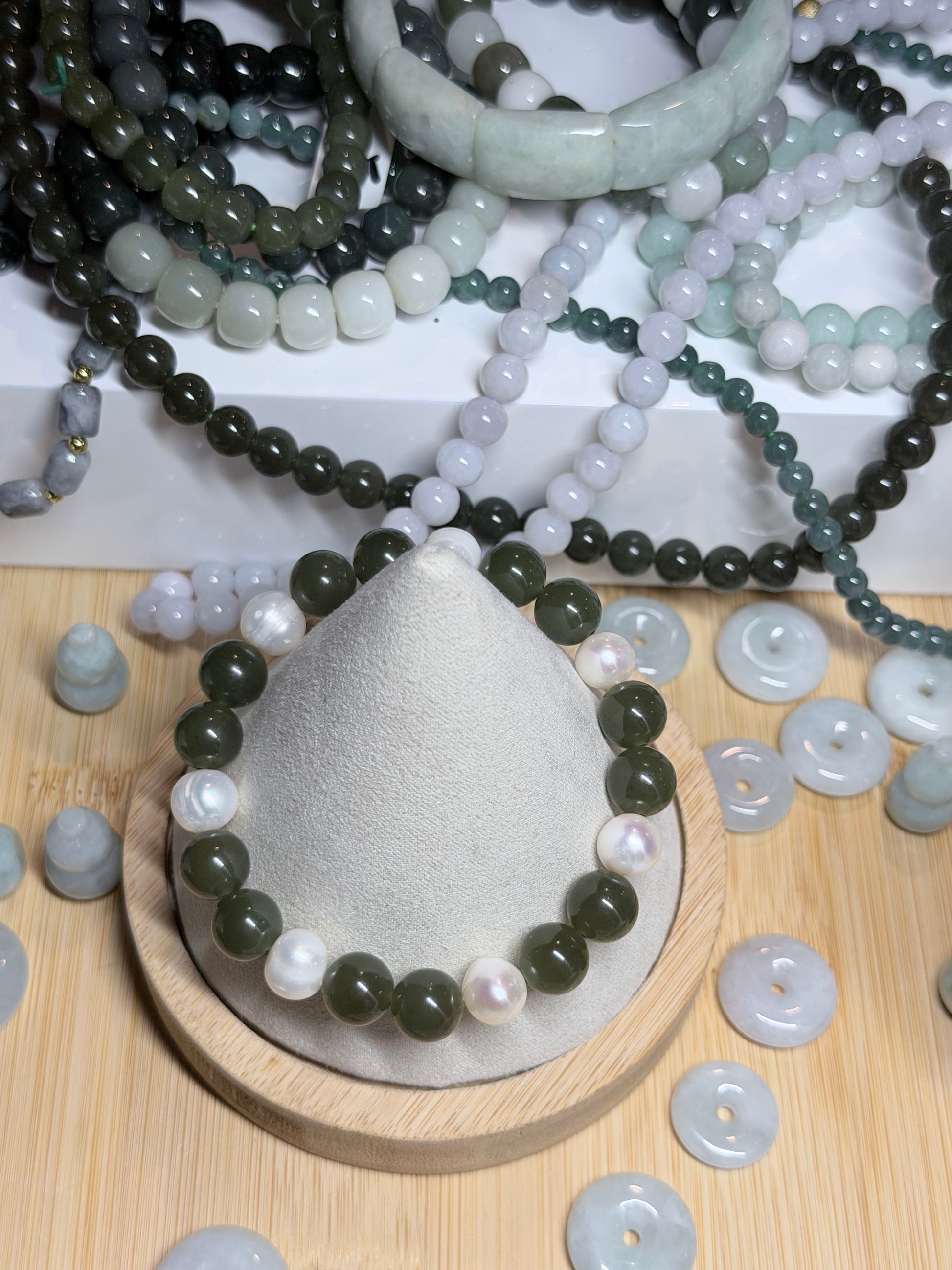 HETIAN JADE W/ FRESHWATER PEARLS