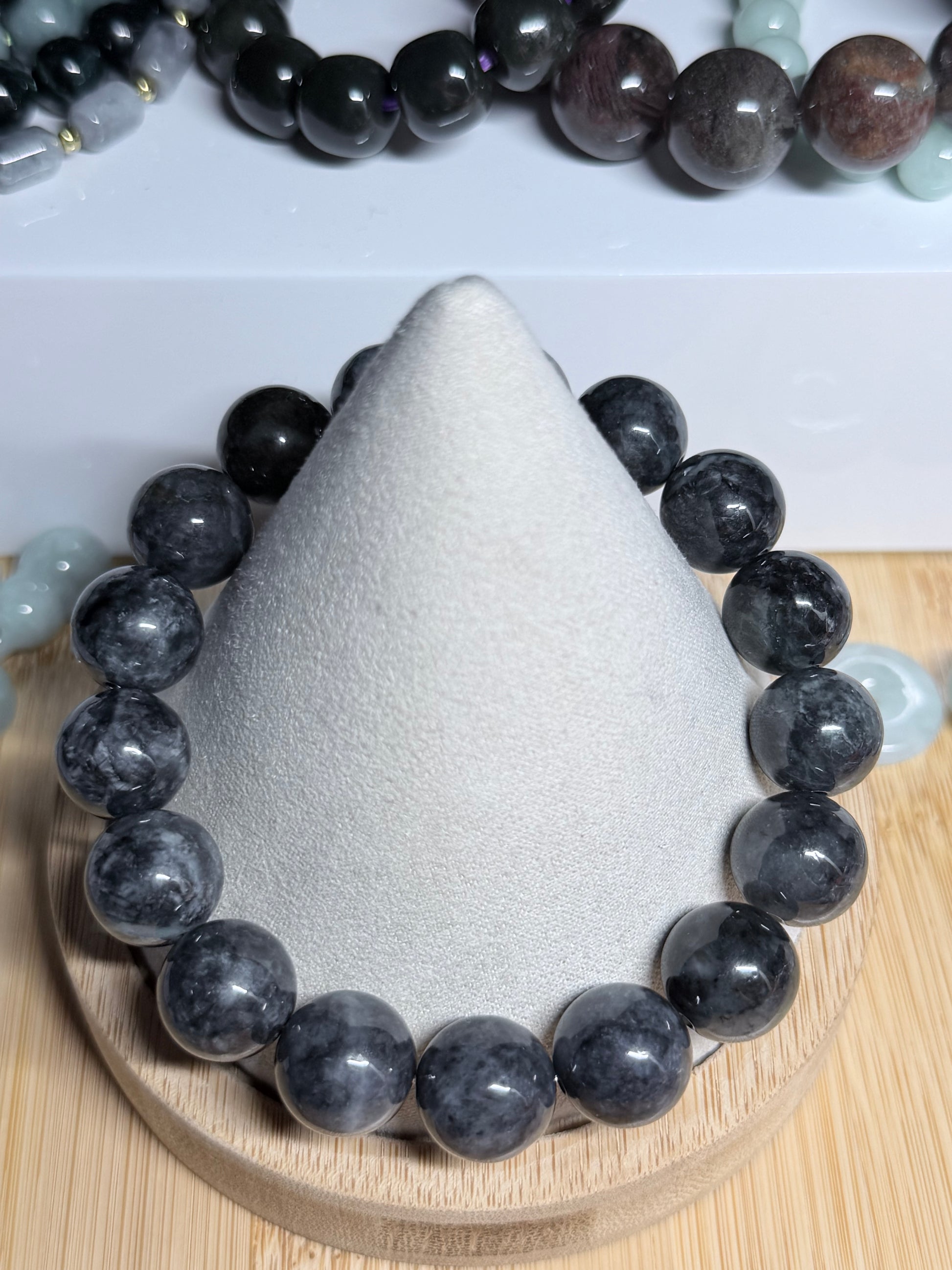 Wuji jadeite, often a deep black or dark jade, is prized for its smooth texture and elegant, unique color. Known for its powerful energy, it is believed to offer strong spiritual protection, warding off negative energy, fear, and aggression, while promoting honest self-reflection, emotional transformation, and inner peace. Like other jade, it is also linked to luck, abundance, improved circulation, and skin vitality.